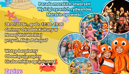 Gminny Ośrodek Kultury w Nowej Wsi Wielkiej zaprasza dzieci w wieku #3–12 lat na wyjątkową zabawę w głębinach oceanu!