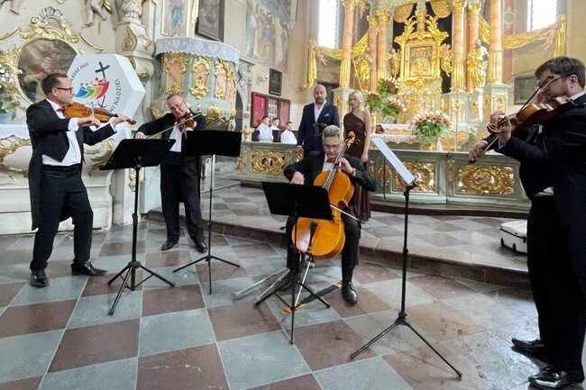 Wydarzenie miało również wyjątkowy wymiar artystyczny – w Sanktuarium odbył się koncert muzyczny, podczas którego wystąpił Kwartet Virtuoso, wzbogacając pielgrzymkowe spotkanie piękną oprawą muzyczną.