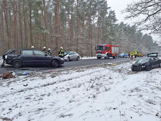 Na miejsce natychmiast skierowano cztery zastępy straży pożarnej. Doszło tam do zderzenia czterech samochodów osobowych. Łącznie pojazdami podróżowało siedem osób. Cztery z nich odniosły obrażenia i zostały przetransportowane do szpitala przez Zespoły Ratownictwa Medycznego - informują strażacy z OSP Solec Kujawski.