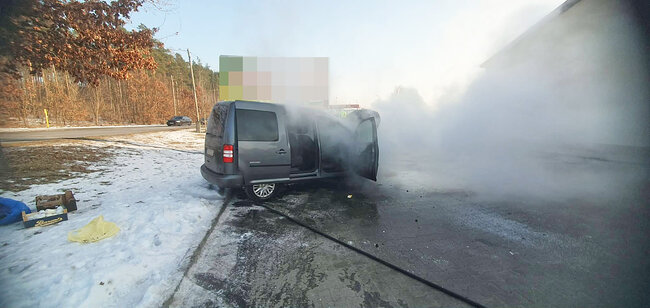 Do pożaru doszło na parkingu jednego z marketów. Na miejsce natychmiast zadysponowano strażaków z Ochotniczej Straży Pożarnej KSRG w Koronowie. Przybył również patrol policji.