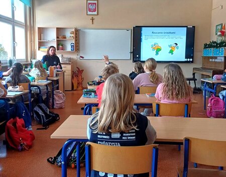 W ubiegłym tygodniu (08-09.01.2026) profilaktycy z komisariatu na Wyżynach spotkali się z uczniami Szkoły Podstawowej nr 38 przy ul. Węgierskiej 11 w Bydgoszczy, by przeprowadzić z nimi zajęcia dotyczące szerokiego pojęcia, jakim jest bezpieczeństwo w domu, w ruchu drogowym, a także w innych miejscach. Był to doskonały moment, by przybliżyć najmłodszym również najważniejsze zasady bezpiecznego wypoczynku podczas zbliżających się ferii zimowych. Uczniowie obejrzeli z tej okazji specjalnie przygotowaną prezentację multimedialną.