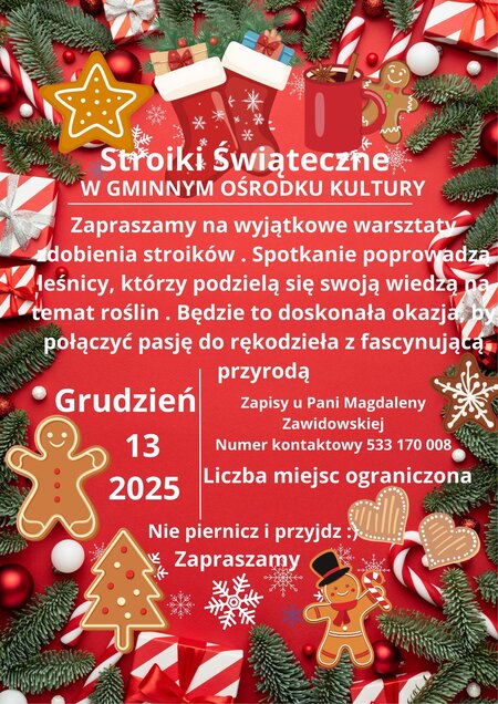 W Gminnym Ośrodku Kultury w Nowej Wsi Wielkiej odbędą się ostatnie warsztaty #świąteczne. Zapraszamy! Szczegóły na plakacie.